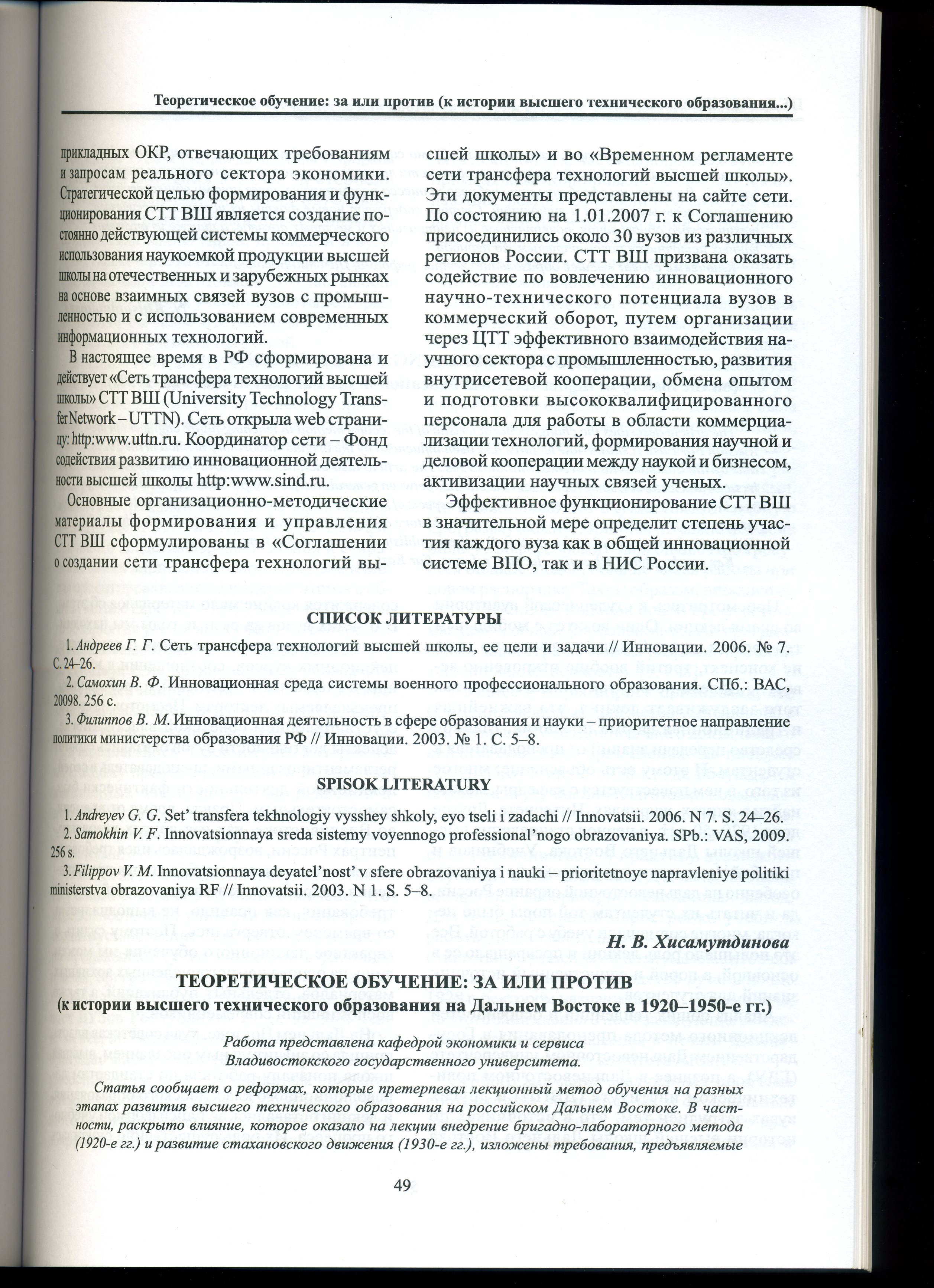 Теоретическое обучение: за и против (к истории высшего трехнического образования на Дальнем Востоке в 1920-е - 1950-е гг.)