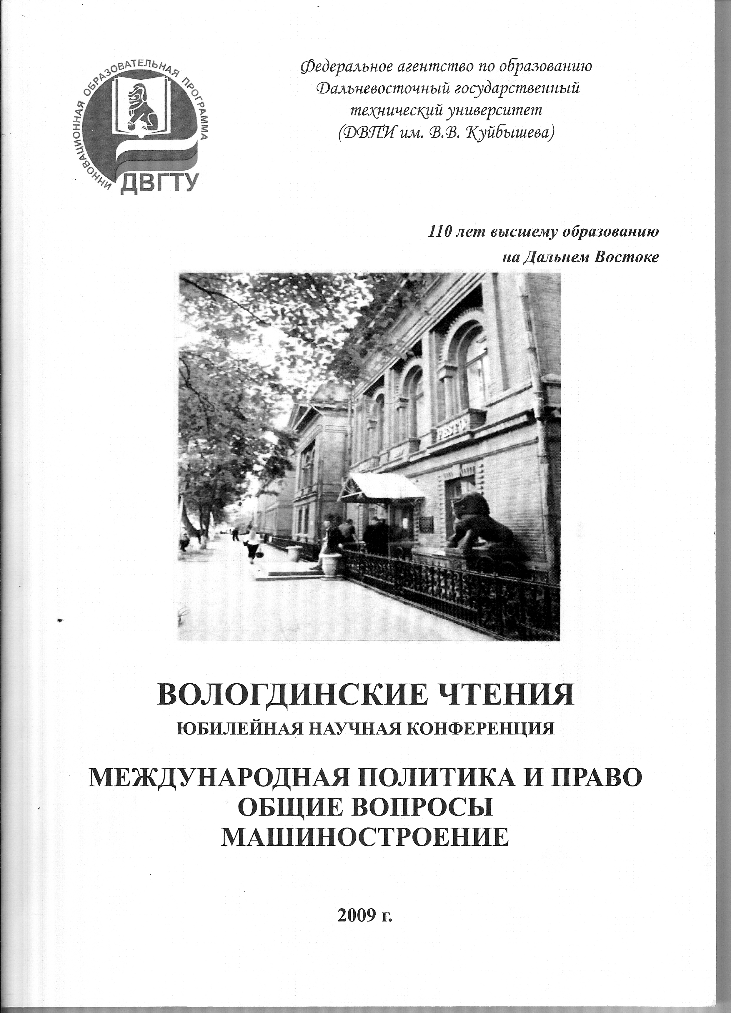 Вологодинские чтения. Юбилейная научная конференция. Международная политика и право. Общие вопросы. Машиностроение