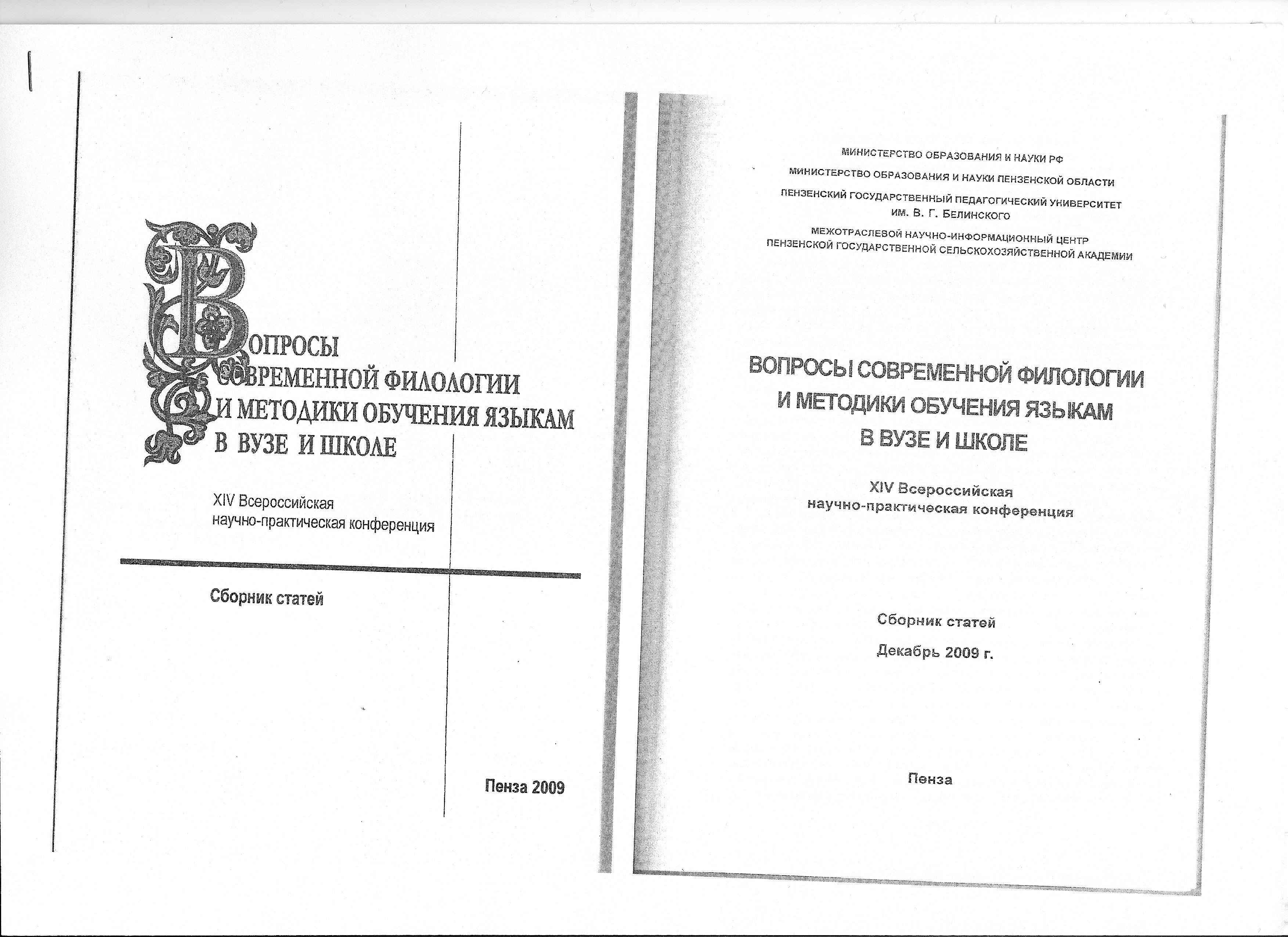 Вопросы современной филологии и методики обучения языкам в ВУЗе и школе
