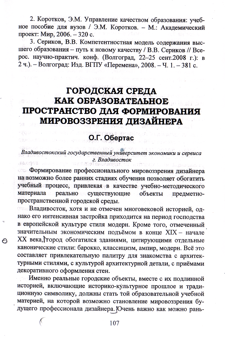 Городская среда как образовательное пространство для формирования мировоззрения дизайнера
