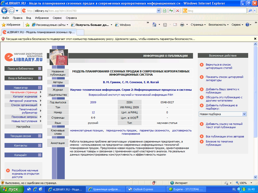 Модель ппланирования сезонных продаж в современных корпоративнных информационных системах