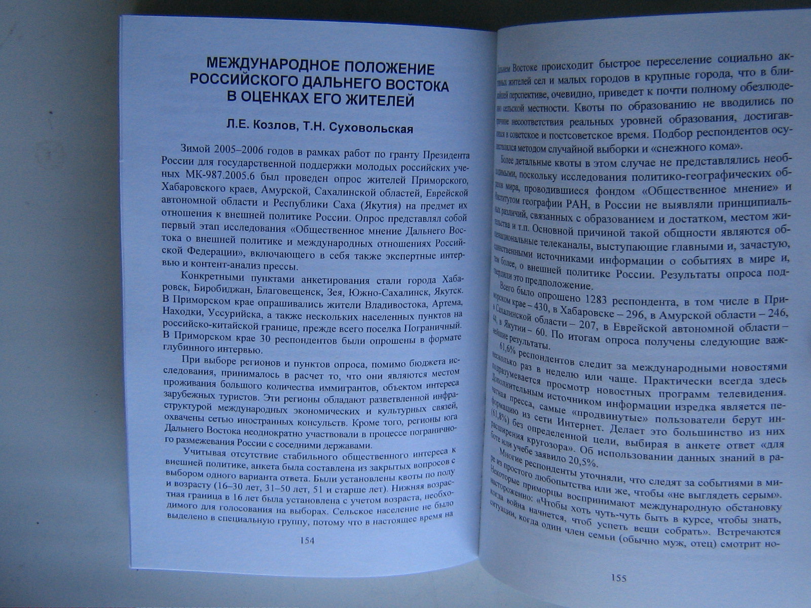 Международное положение российского Дальнего Востока в оценках его жителей