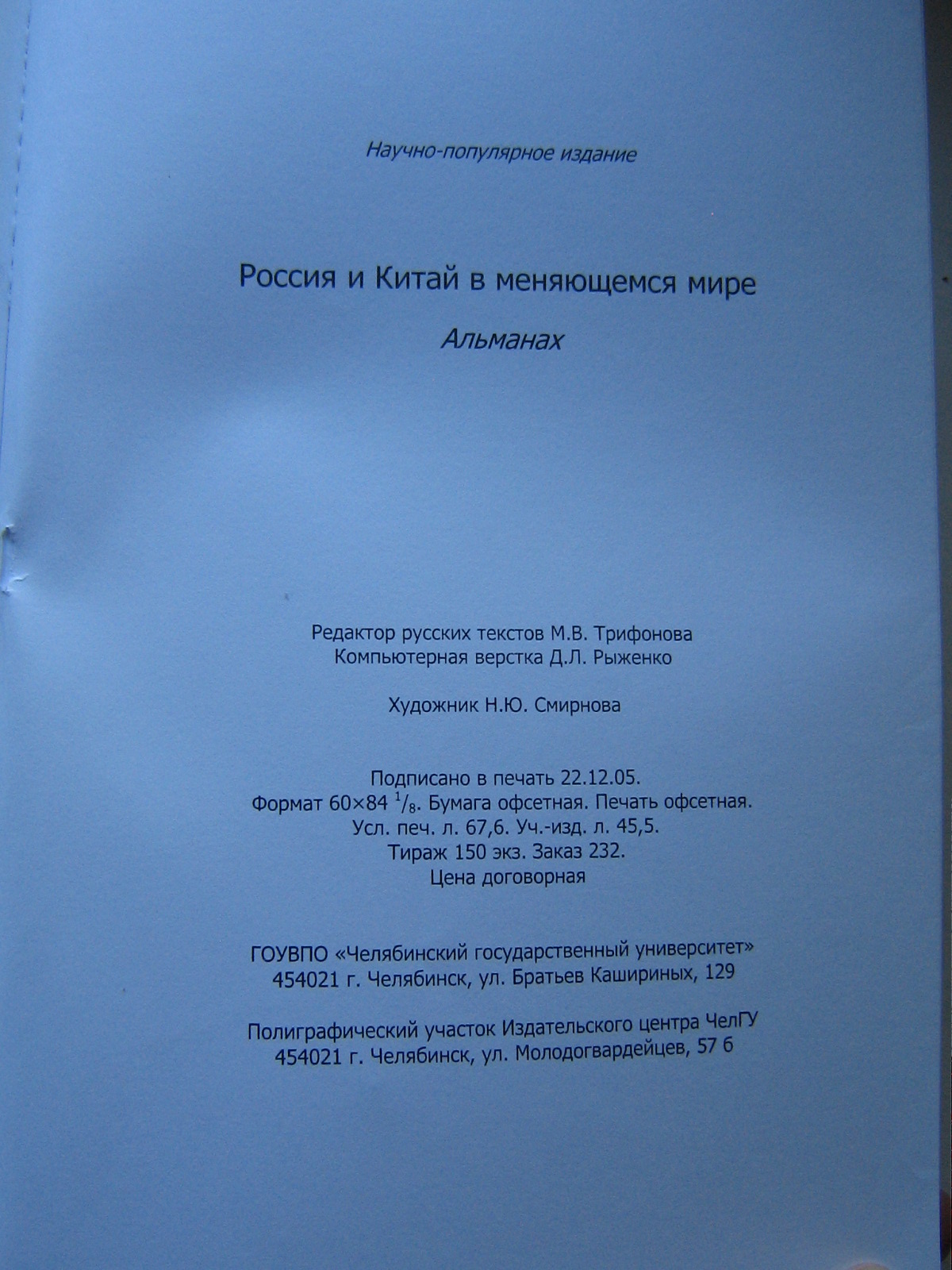 Россия и Китай в меняющемся мире: Альманах