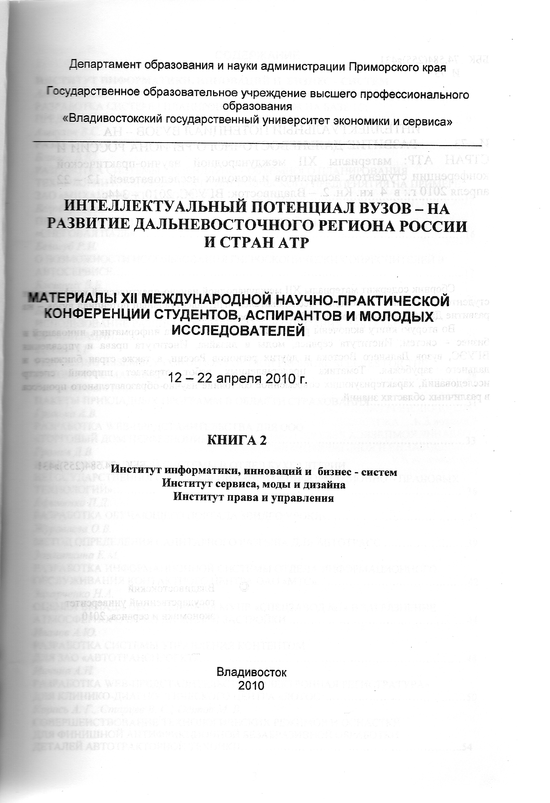 Интеллектуальный потенциал вузов на развитие дальневосточного региона России и стран АТР XII - II