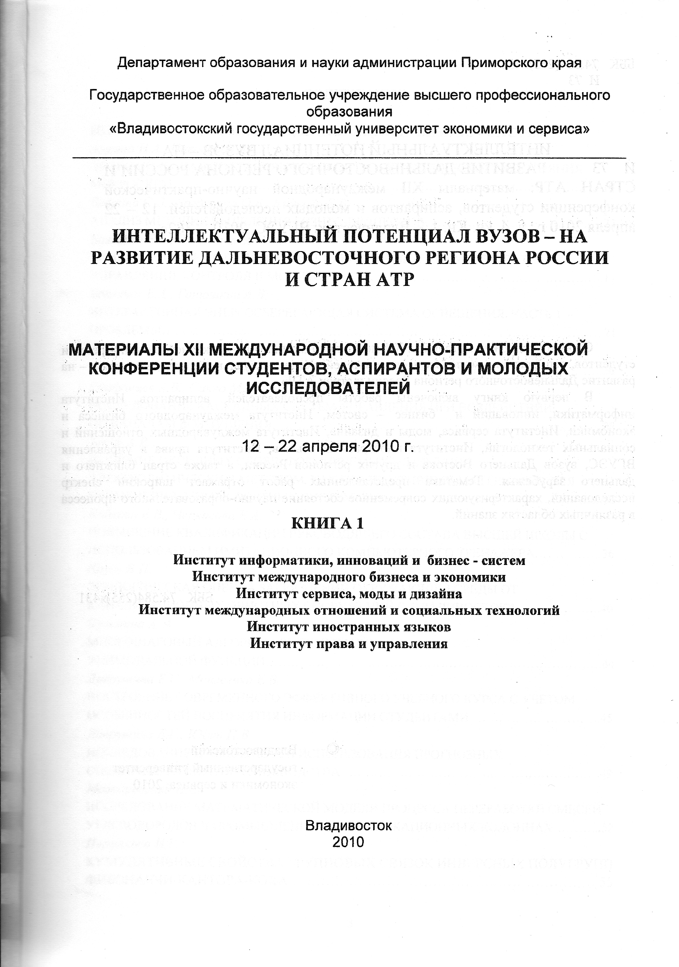 Интеллектуальный потенциал вузов на развитие дальневосточного региона России и стран АТР XII - I