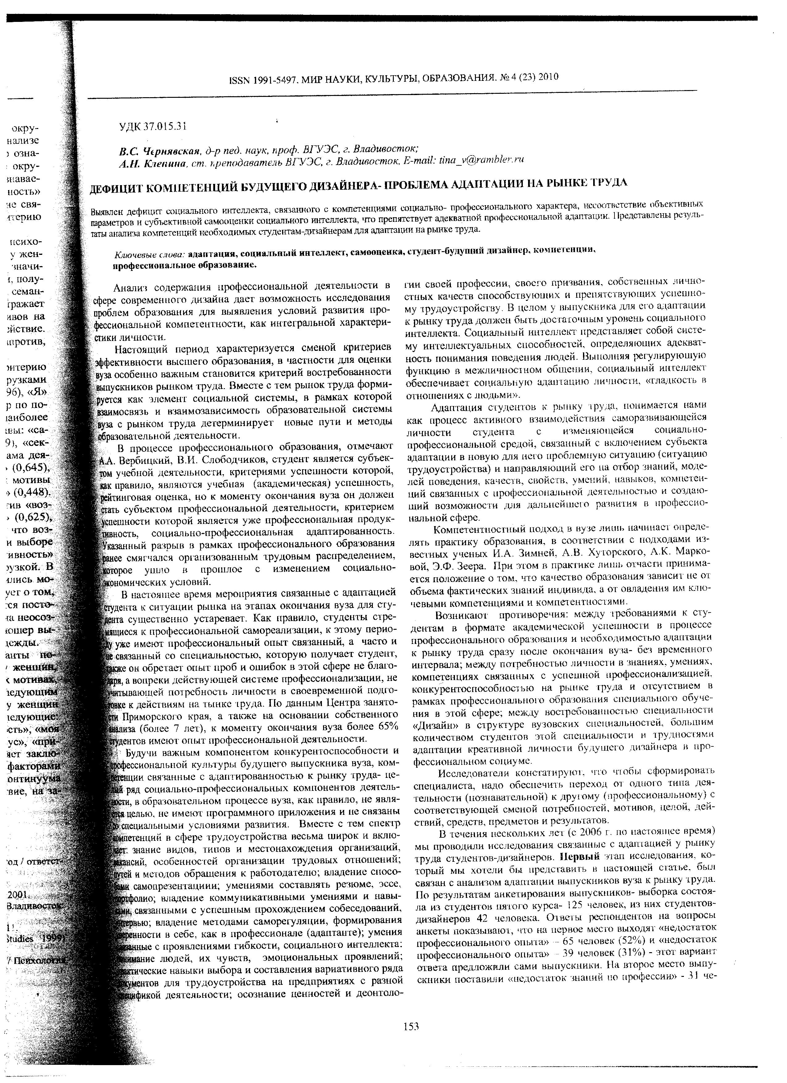 Дефицит компетенций будущего дизайнера - проблема адаптации на рынке труда