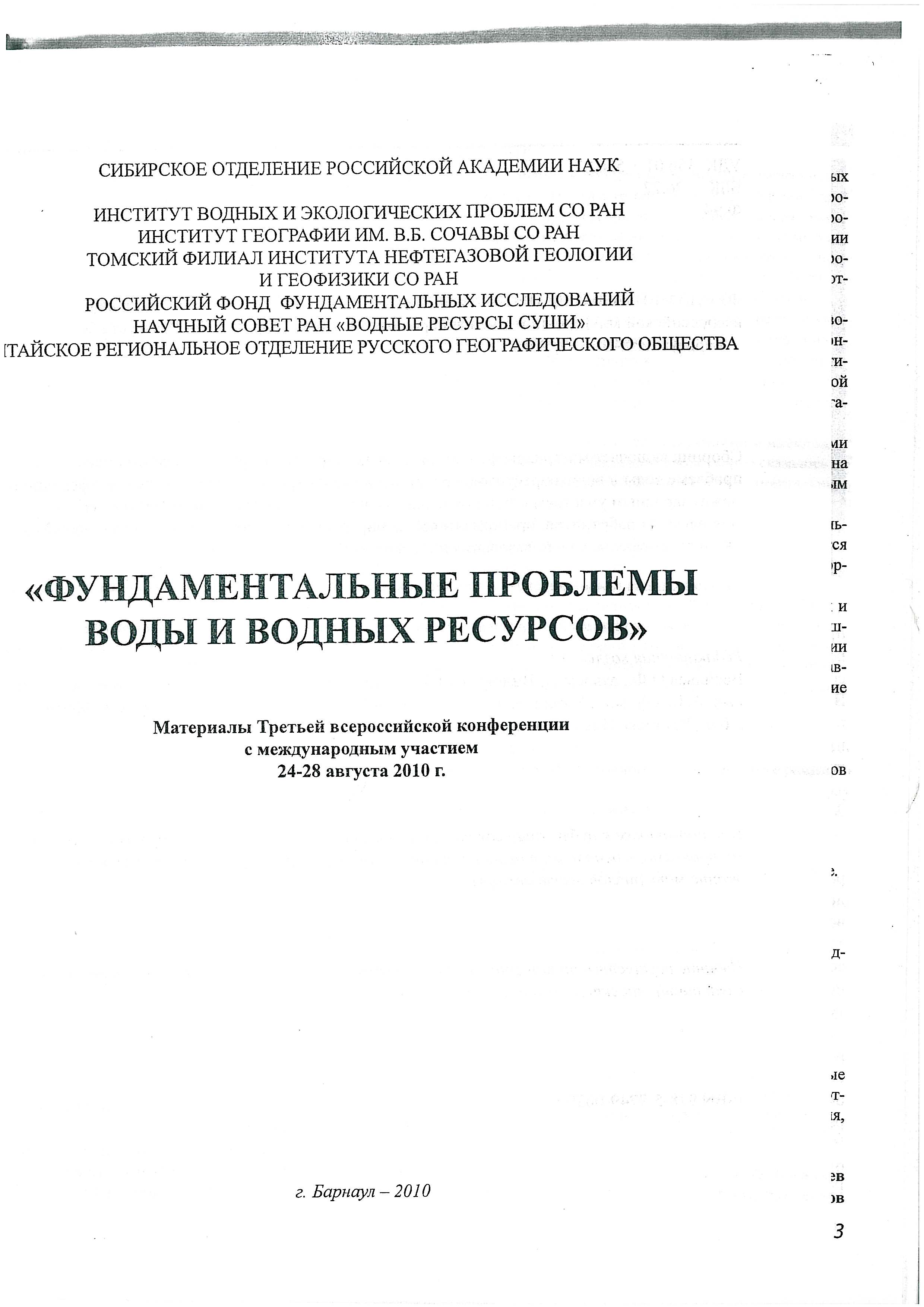 Фундаментальные проблемы воды и водных ресурсов. Материалы третьей всероссийской научной конференции с международным участием