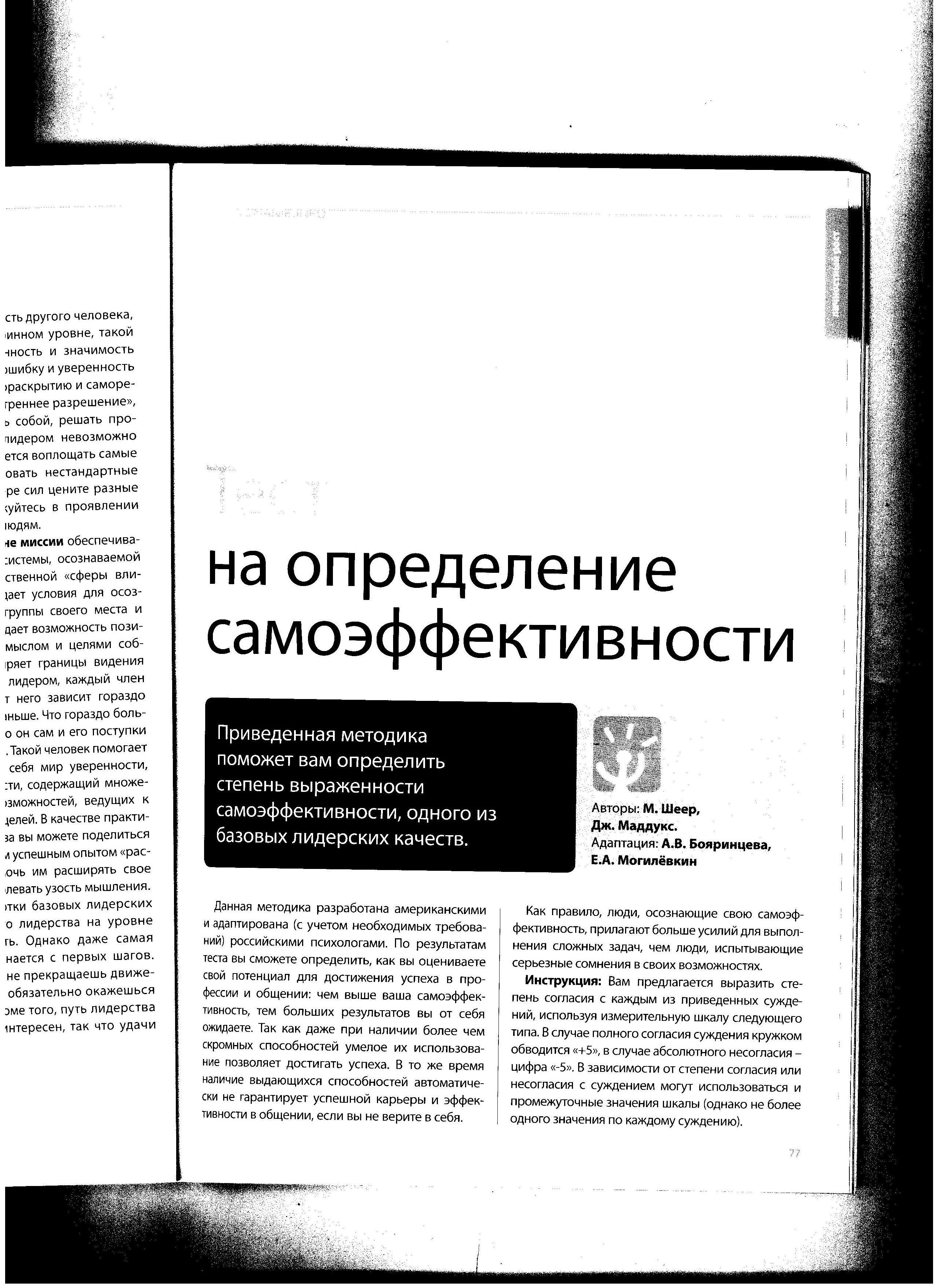 Тест на определение самоэффективности