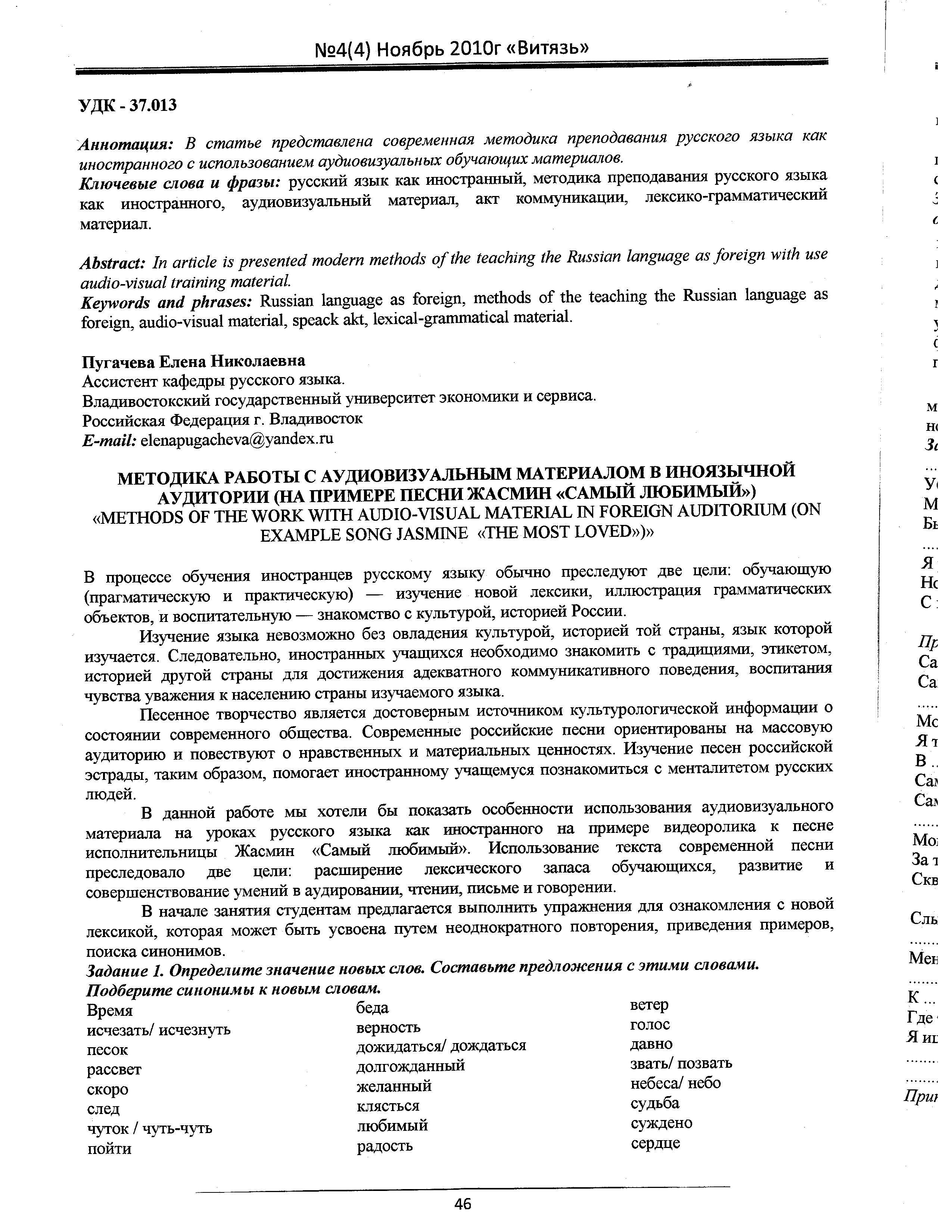 Методика работы с аудиовизуальным материалом в иноязычной аудитории