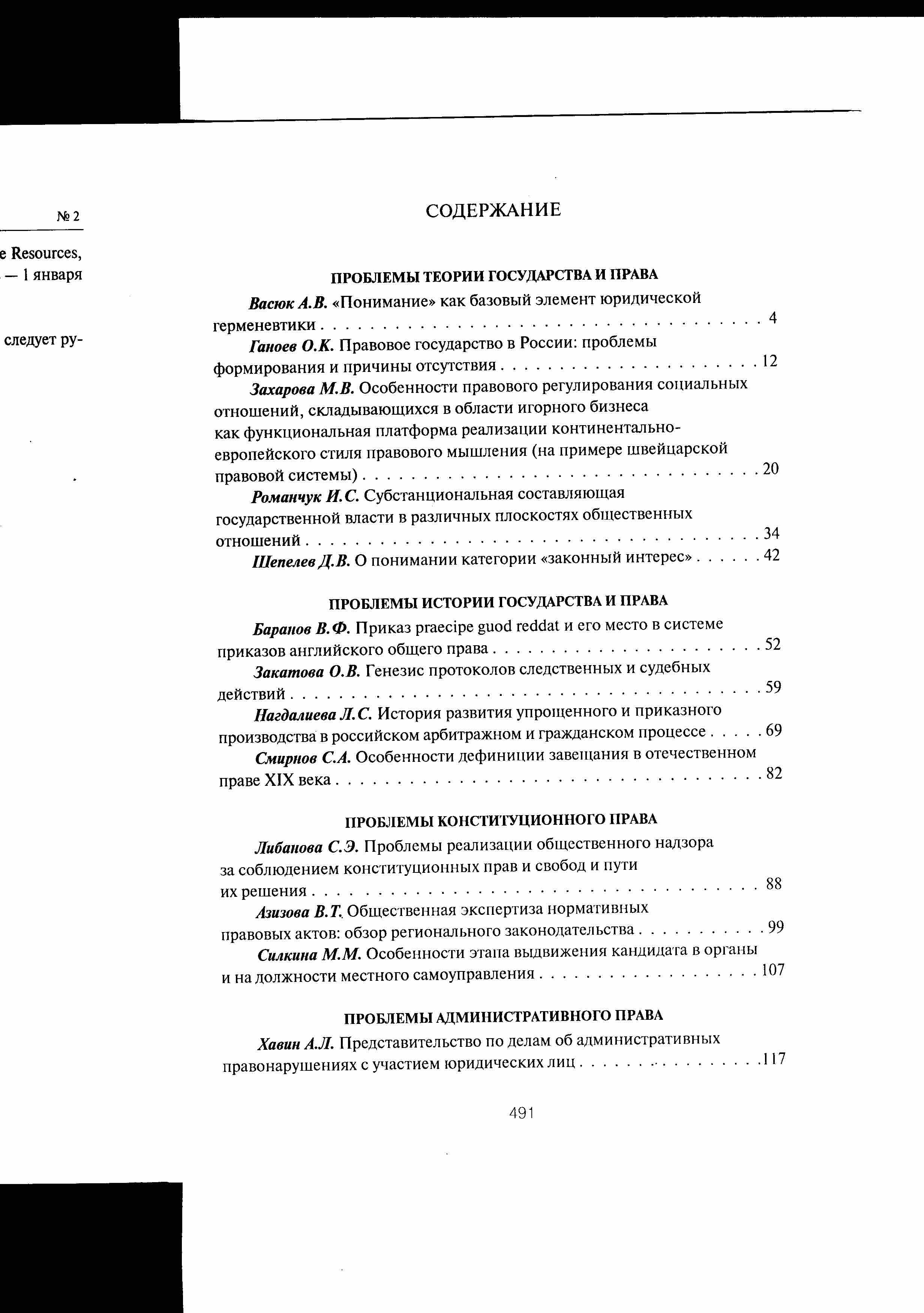 Актуальные проблемы российского права