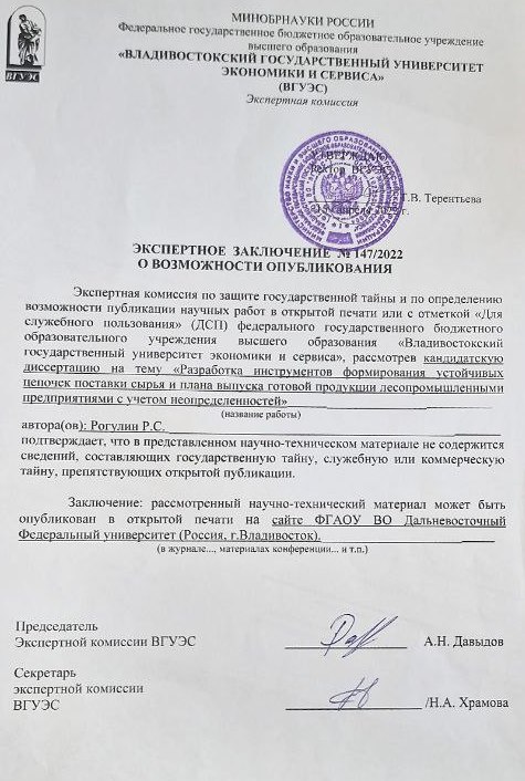 Разработка инструментов формирования устойчивых цепочек поставки сырья и плана выпуска готовой продукции лесопромышленными предприятиями с учетом неопределенностей